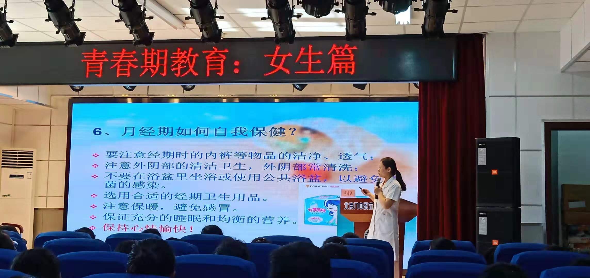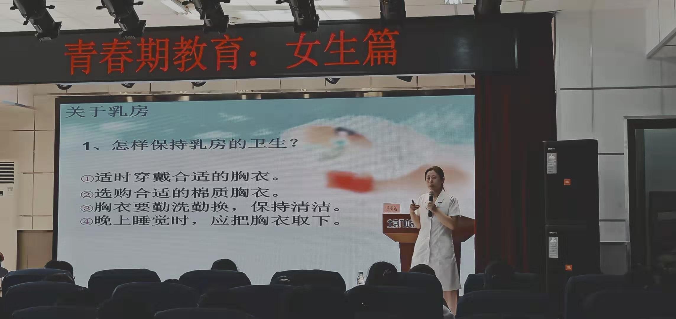 又到一年开学季,为帮助初中女生更好地了解和认识自己的身体和心理状况,消除青春期的各种烦恼,9月2日下午,门头沟区医院健康管理中心主任康荣臻、副主任王雪洁、妇科副主任医师李奇迅来到北京市第八中学永定实验学校,为初中七年级全体女生开展了一堂精彩生动的“青春期生理卫生知识教育”专题讲座。