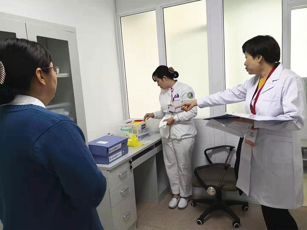 十月金秋至,丹桂飘香浓。10月29日,由北京同仁医院护理部主任李越,北京301医院护士长郭梅,协和护理学院梁涛教授,以及平谷区医院护理部主任李红霞组成的北京市静脉输液治疗调研小组专家一行5人,来到门头沟区医院督导检查静脉治疗工作。区医院护理部主任刘改红、心内科护士长尚亚丽、肿瘤科护士长田雪莲、普外科护士宋丹丹参加了迎检接待工作。