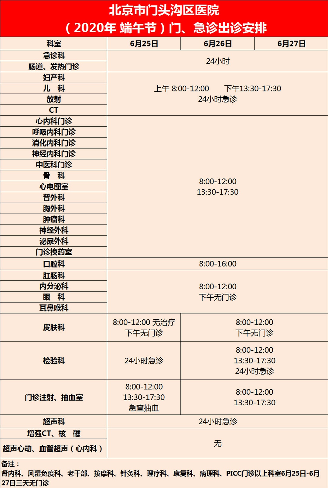 润心服务丨北京市门头沟区医院2020年端午节出诊信息