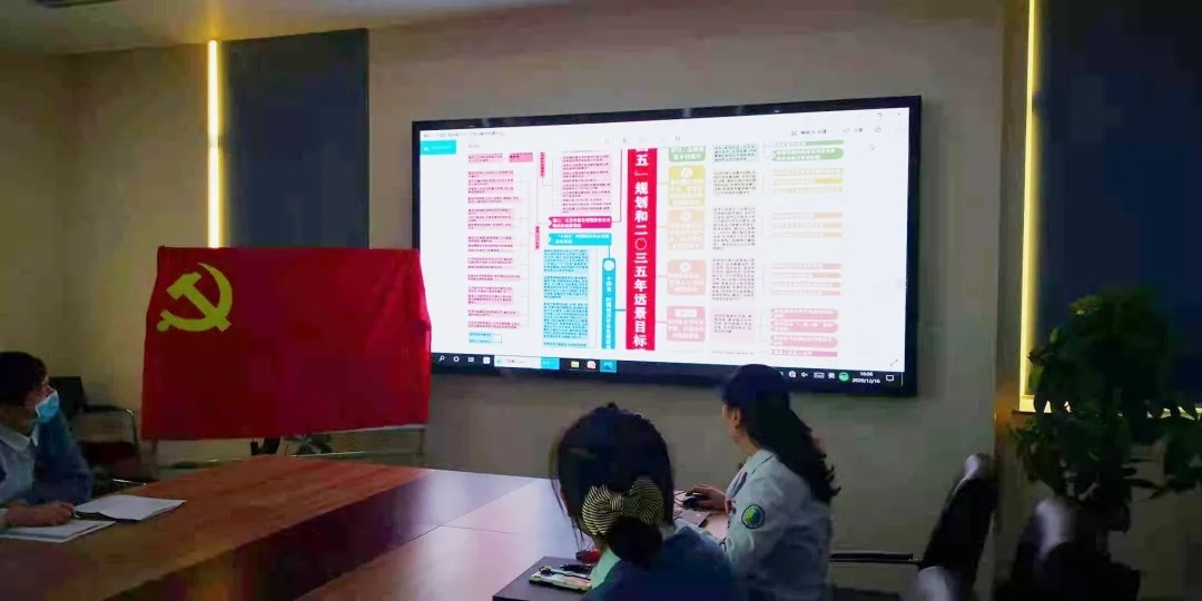 院党委把“学”字作为落实全会精神的前提,一是组织党团干部先行学。在党的十九届五中全会结束不久,组织党团支部书记,通过“发展”、“新”、“全面”、“坚持”、“高质量”等全会“热词”对十九届五中全会内容要点进行学习。