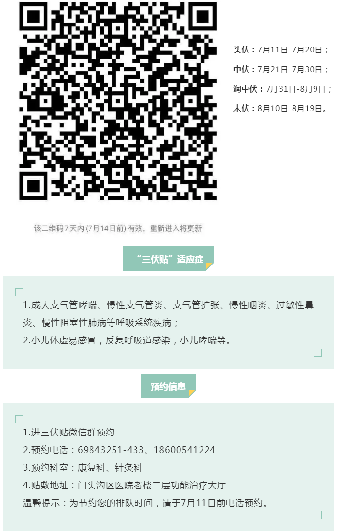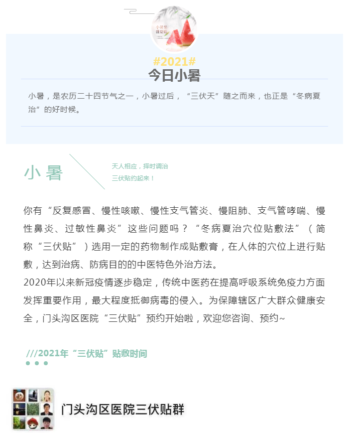 今日小暑 | 门头沟区医院冬病夏治三伏贴预约开始啦!