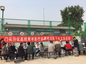 按照团区委2016年“送医下乡志愿活动”工作部署,门头沟区医院将在今年开展党团联合义诊系列活动。第一站是龙泉雾社区居委会,通过提前与当地社区沟通,实际了解了居民的需求,并选派儿科老主任医师王玉玲、妇产科医师韩颖、骨科优秀青年医师曲绍东、团干部及志愿者一行13人,于4月26日下午2点半到达龙泉务社区活动站开展义诊活动。