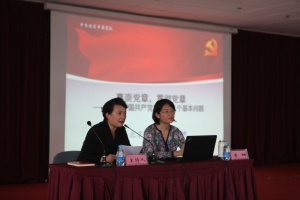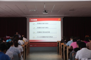 李娜教授首先引用习近平总书记《认真学习党章 严格遵守党章》中的一段话强调学习党章的重要性和必要性,然后从党章的内涵与特点, 党章的功能与地位,党章制订修改的历程等方面进行深入浅出的讲解,最后对现行的十八大党章的内容与特点进行了重点解读。