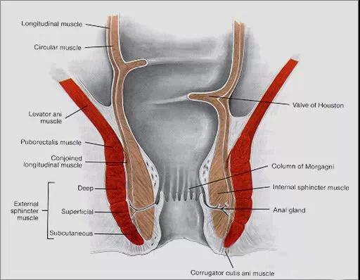 自然哲学认为:简约但不简单。从功能意义上来说,肛门的功能仅仅是排泄消化道“废物”的通道,就像一个水龙头就是为了“排水”一样的简约。但是,为了达到“定期、定量”的排泄,而不是“滴滴洒洒”,肛门的结构装置可就没有那么简单了,它的精密程度远胜于“神州飞船”月球着陆。消化道末端与肛门外口之间,是一个约4cm长的管道,称为“肛管”,被周围的环状肌肉(肛管括约肌包围,肌肉收缩后使肛门开口呈“束状”闭合,类似于褡裢口袋的封口。肛管括约肌类似于口袋上的那个绳子。