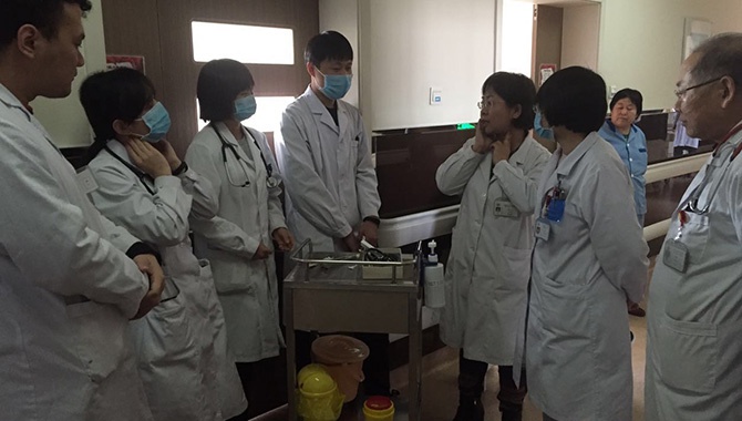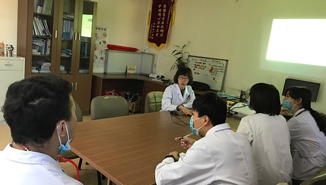 每周二主任大查房,由学员对自己所管患者进行病例汇报,并且分析讨论患者的诊断及治疗进程,最后大家讨论决定下一步的治疗方案。强化学员对疾病的认识,督促学员自己去查阅资料,深入全面的掌握疾病。每周三是我科疑难危重症及死亡病例讨论日,由赵主任带头,各位医师轮流发言,最后主任进行总结性发言。对学员处理危急重症的流程有一定的启发作用,拓宽了学员对疾病诊治的思维。