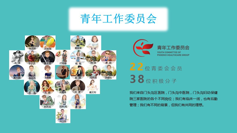 青委会建立了一个多医院、多学科青年人共同交流的机会,感召大家践行 “关爱、创新、坚持、分享”的文化理念,拓展了青年人追求事业的平台。我们相信,随着青委会的发展,将为集团、医院培养更多优秀的后备管理人才。