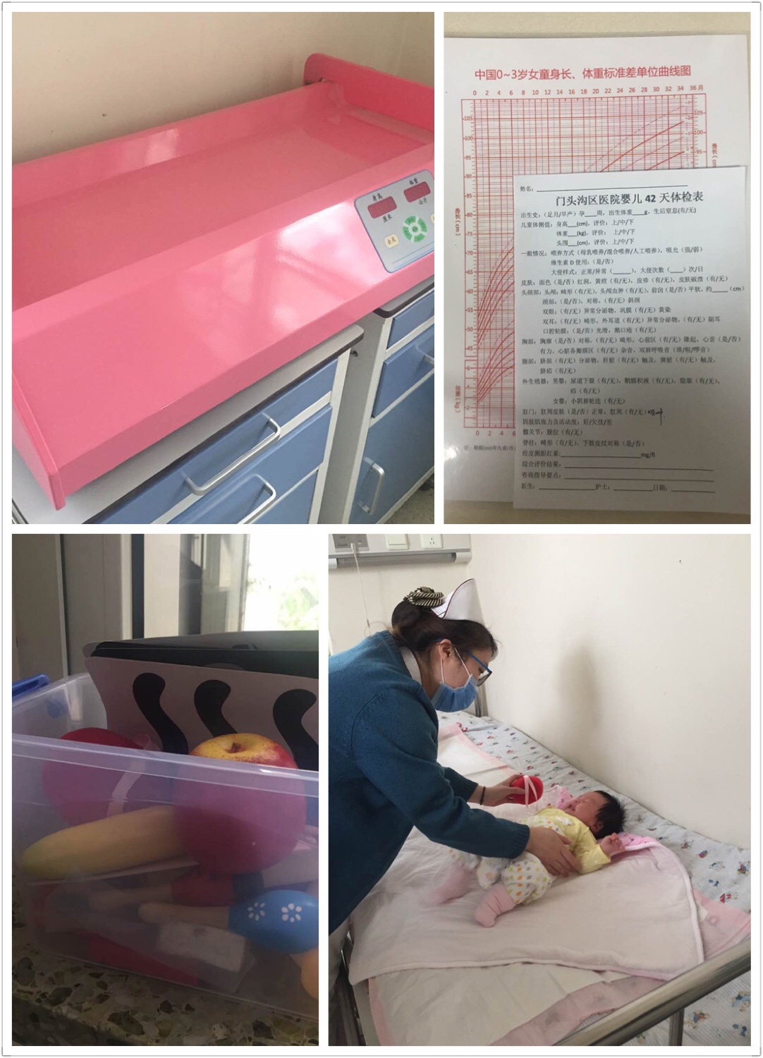 为响应医改新政,方便患者,我科室开展了“婴儿42天体检”项目,包括基础查体、智力体力发育评价、抚触等内容。温馨舒适的环境,温柔美丽的护士阿姨,细致专业的儿科医师,小宝宝完成了他(她)人生中的第一次体检!同时,我们还向家长免费发放0-1岁的健康宣教手册,指导家长科学养育宝宝。