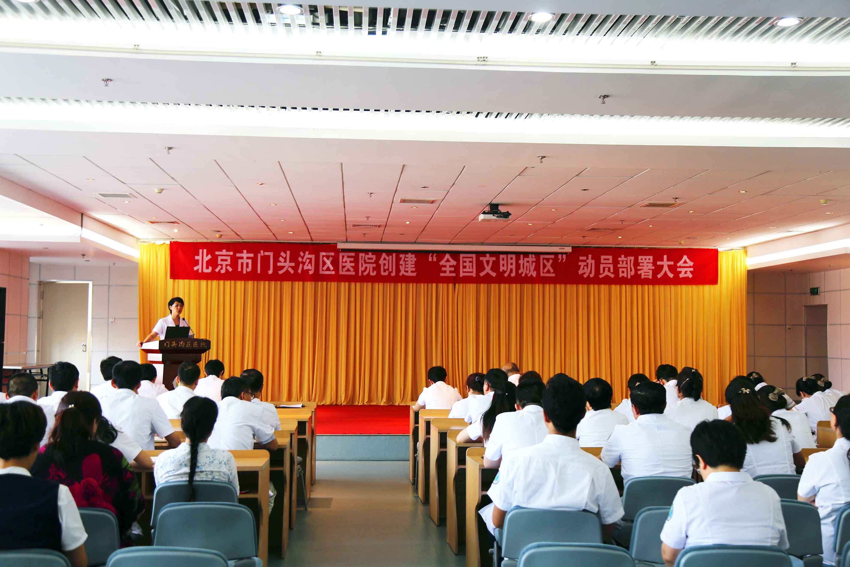 7月24日,门头沟区医院在九层报告厅隆重召开创建“全国文明城区”动员部署大会,标志着区医院创建全国文明城区工作正式启动。大会由执行院长戴莉主持。