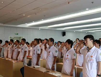 “我志愿献身医学,热爱祖国,忠于人民,恪守医德,尊师守纪,刻苦钻研……”一句句铿锵有力的誓词掷地有声,响彻整个报告厅,令在场的医师心潮澎湃,更让他们回归学医初心,坚定了投身医疗事业、服务患者、维护医学神圣和纯洁的决心。