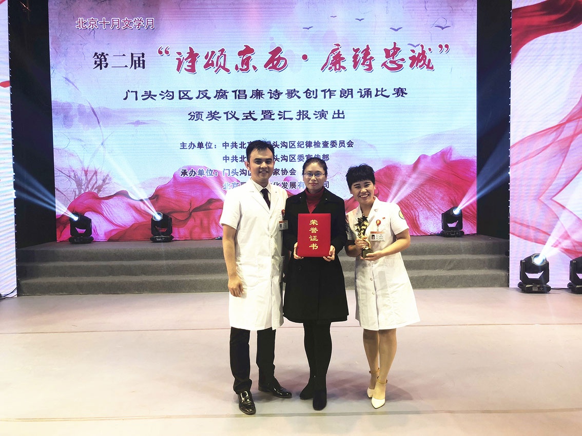 10月23日,门头沟区组织开展第二届“诗诵京西,廉铸忠诚”反腐倡廉诗歌创作朗诵大赛暨汇报演出。经过为期4个月的创作、选拔和角逐,共征集200余篇作品,400多人参与,最终我院参赛作品《生命礼赞》荣获佳作奖(三等奖)。