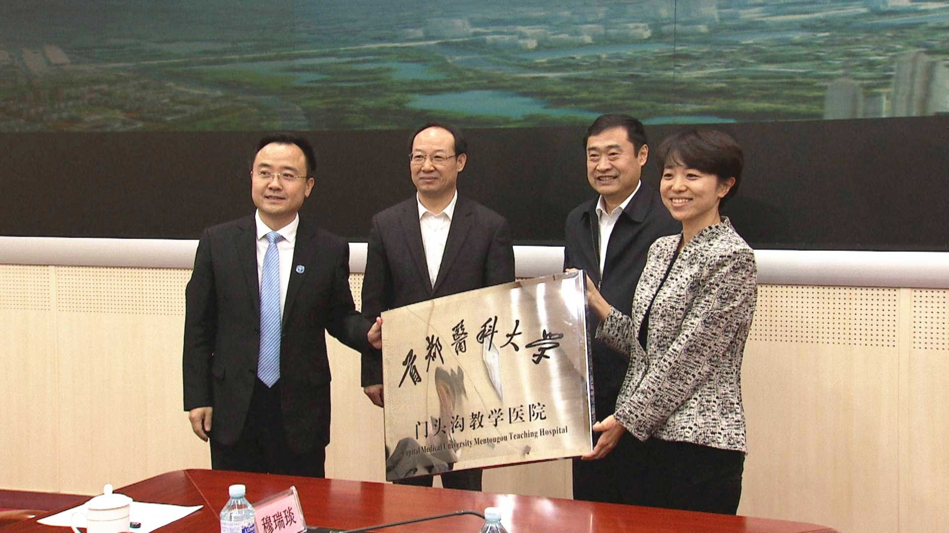 小雪未成寒,喜事逢晴天。2018年11月22日,“首都医科大学门头沟教学医院”授牌仪式在门头沟区委隆重举行。首都医科大学党委书记呼文亮、副校长孙力光,门头沟区委书记张力兵、副区长庆兆珅等主要领导出席了仪式。门头沟区副区长庆兆珅主持了授牌仪式。