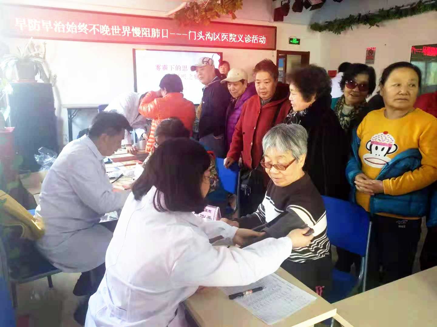 为进一步提高社会各界对慢阻肺危害的认识,有效预防和治疗慢阻肺,2018年11月22日,门头沟区医院呼吸与危重症医学科在第17个世界慢阻肺日来临之际与社区联手在石门营七区举办了“早防早治,始终不晚”的慢阻肺宣教及义诊活动。