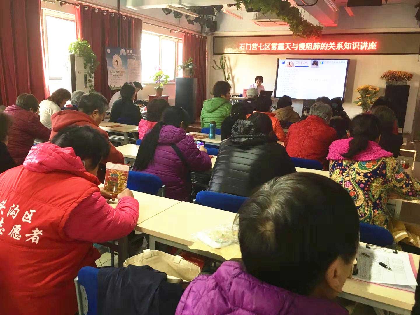 活动中赵岳主治医师为居民讲解了慢阻肺及慢阻肺与雾霾天气的关系,让大家在了解慢阻肺的同时也清楚了雾霾天气对慢阻肺的影响,大家均表示获益匪浅。