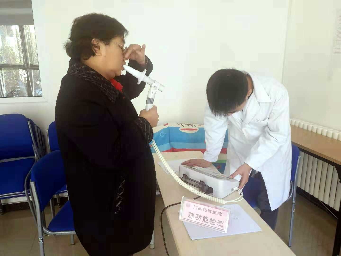 讲课结束后,医务人员为有症状的居民进行了免费简易肺功能检查,对于肺功能结果有异常的居民,呼吸与危重症医学科主任安福成还逐一进行了详细的问诊及体格检查,并给予进一步诊治意见。