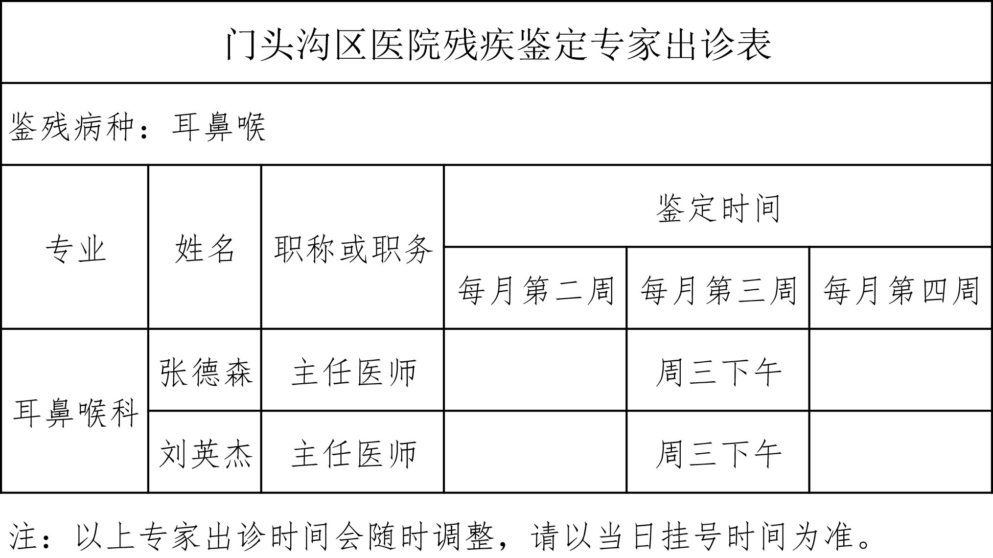 2、患者须持村、镇、街道办事处下发的“北京市残疾人证申领审批登记表”(须个人信息填写完整,附身份证复印件、加盖街道民政部门的审批章以及街镇指定领导的签字),来院按照指定专家出门诊的时间挂号就诊,并出具相应的疾病诊断。