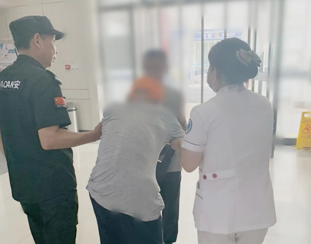 急诊科护理人员及医院保安搀扶老人就诊