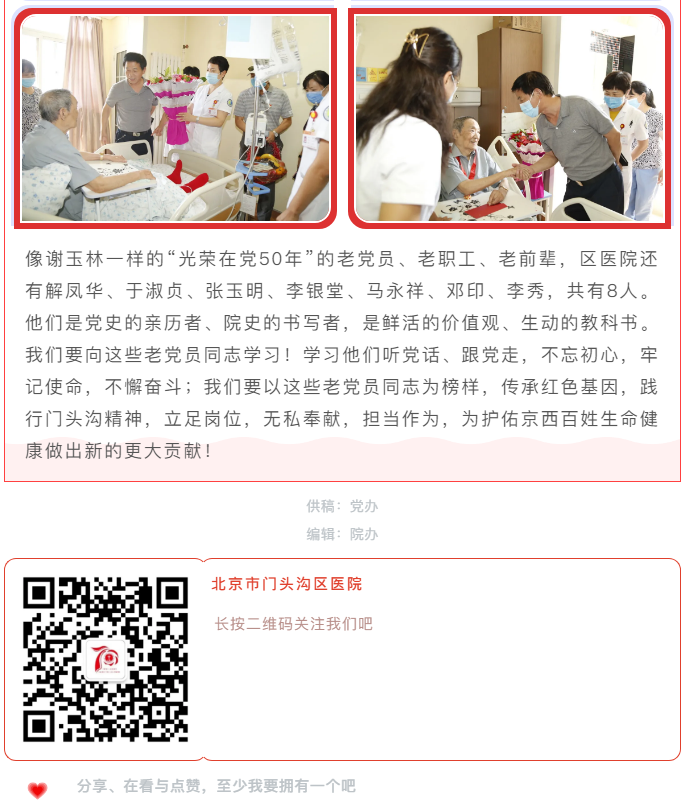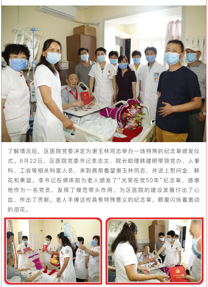 【耄耋老人病卧床 组织关爱到身旁】 ——门头沟区医院党委为患病老党员举办特殊的纪念章颁发仪式