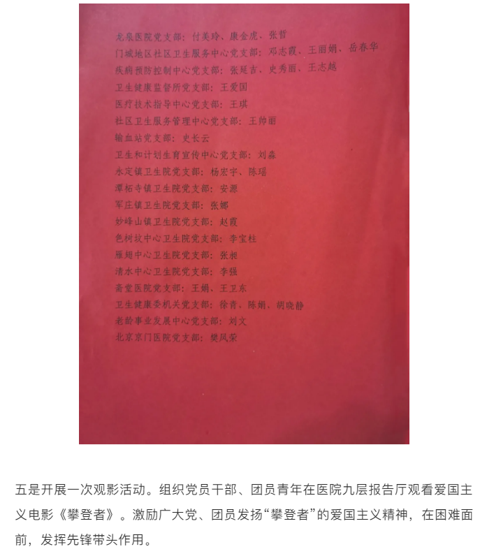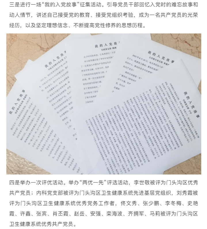 建党百年 初心不变 ——北京市门头沟区医院党委积极开展“七个一”活动