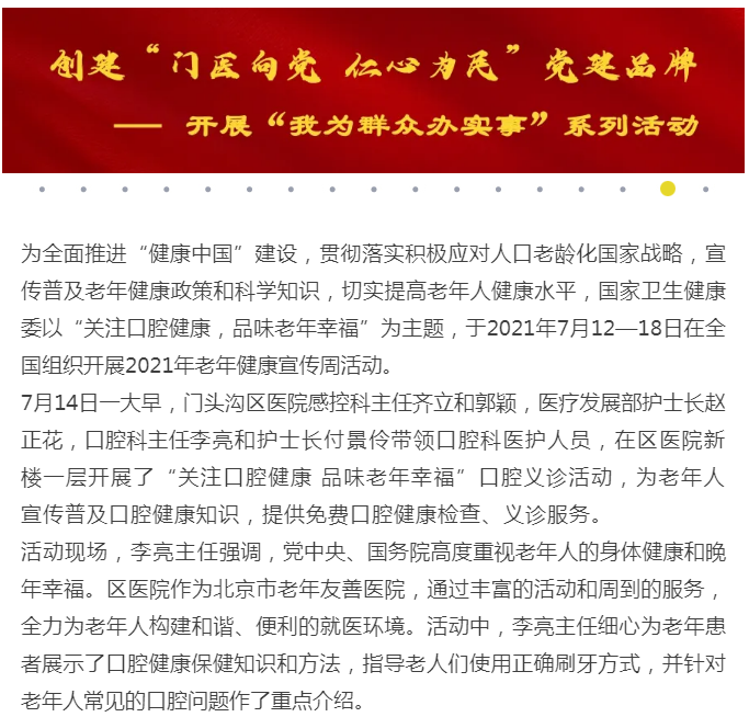 老年友善 爱在门医——门头沟区医院组织“关注口腔健康 品味老年幸福”口腔义诊活动