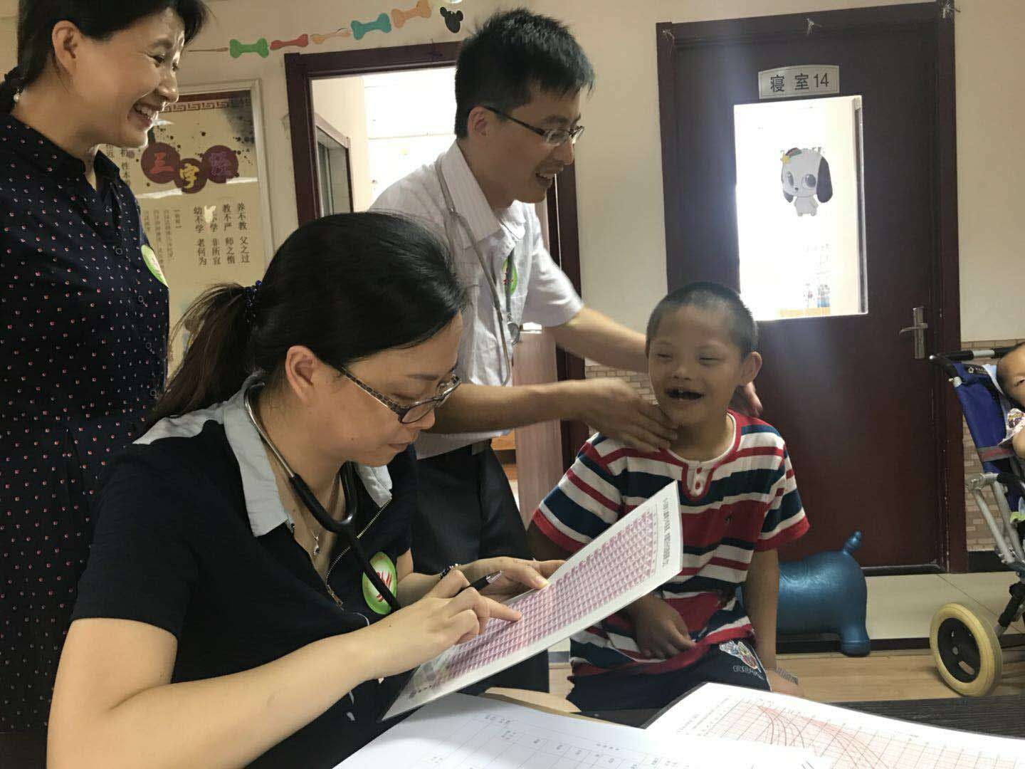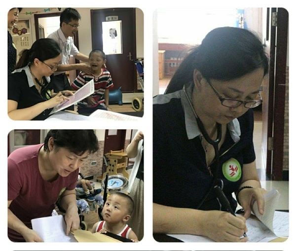 儿科刘展,王志杰,王海波三位大夫给每一位孩子准备了病历以及健康档案,为孩子们测量身高,头位,体重,内科检查,并记录在册。孤儿院孩子们的病情都很特殊,比如脑瘫,唐氏综合征,精神疾病,聋哑等等,不只是疑难,而且康复也很困难,建立病历按时体检,记录孩子们的生长发育情况,康复进展,以及生命体征变化,可以及时发现康复和成长中的问题,给与健康指导,修改康复计划,在一定程度上帮助孩子们恢复健康,